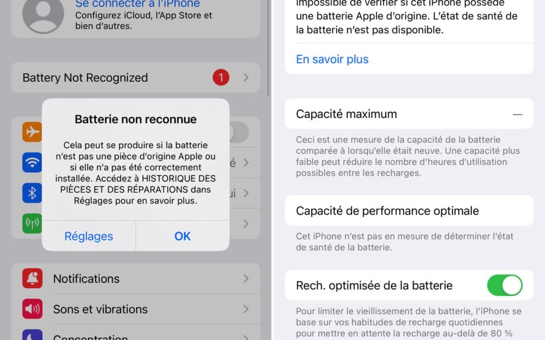 Avec l’arrivée d’iOS 18.1, Apple apporte des améliorations significatives pour les professionnels de la réparation. Depuis l’iPhone XS/XR, Apple a instauré un verrou logiciel empêchant les utilisateurs de remplacer la batterie de leur appareil en dehors du circuit officiel sans recevoir d’avertissement. Lorsqu’une batterie tierce est installée, un message inquiétant s’affiche, indiquant que le système n’a pas pu vérifier l’authenticité de la batterie, la qualifiant de « pièce inconnue » et bloquant l’accès à son état de santé. Cette mesure a posé des difficultés aux boutiques indépendantes qui, malgré l’utilisation de batteries de qualité, se retrouvaient limitées par ces restrictions.